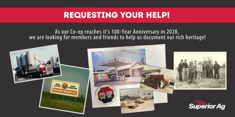 Superior Ag will reach an incredible milestone in 2028 — our 100-year anniversary! As we begin preparing to honor a century of service, growth, and community, we’re looking to our members and friends to help us tell our story.